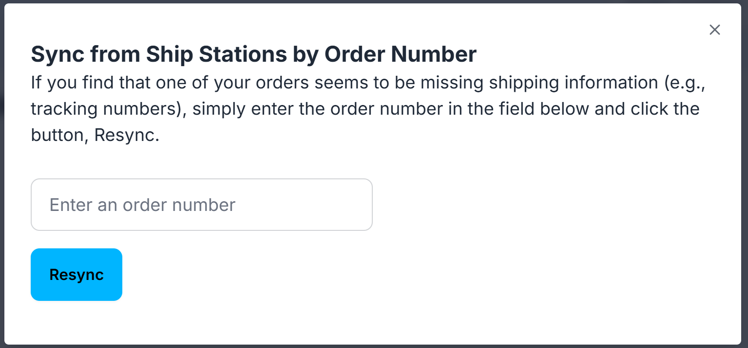 Enter the order number and click Resync.