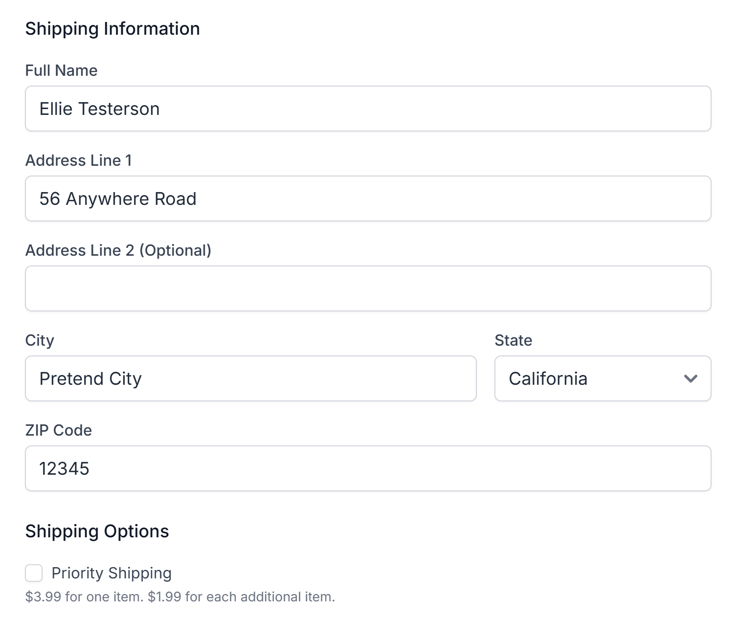- Enter the customer’s shipping information.