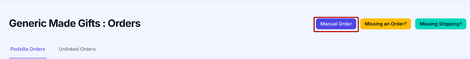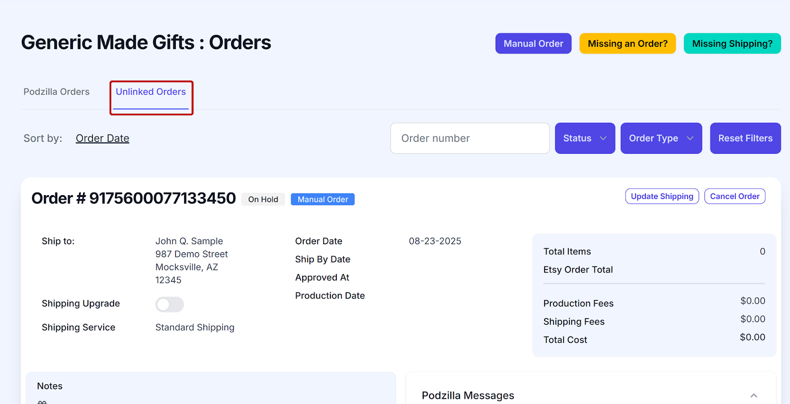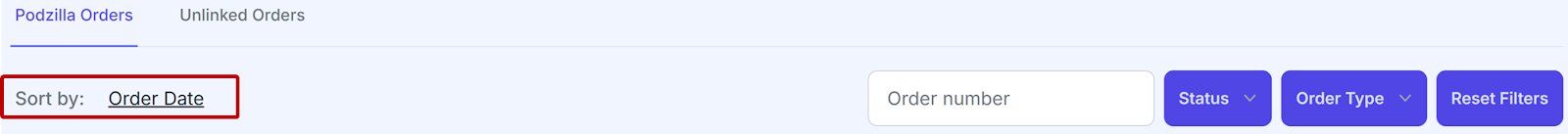 Etsy orders that haven’t been connected to a Podzilla product will show up on your Unlinked Orders tab.