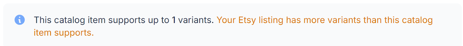 Your Etsy listing variation names must be an exact match to the Podzilla names for this to work. For example, if you named the candle Apple Harvest scent something different (like Apple Orchard), Podzilla won’t find your unique name in the product catalog.