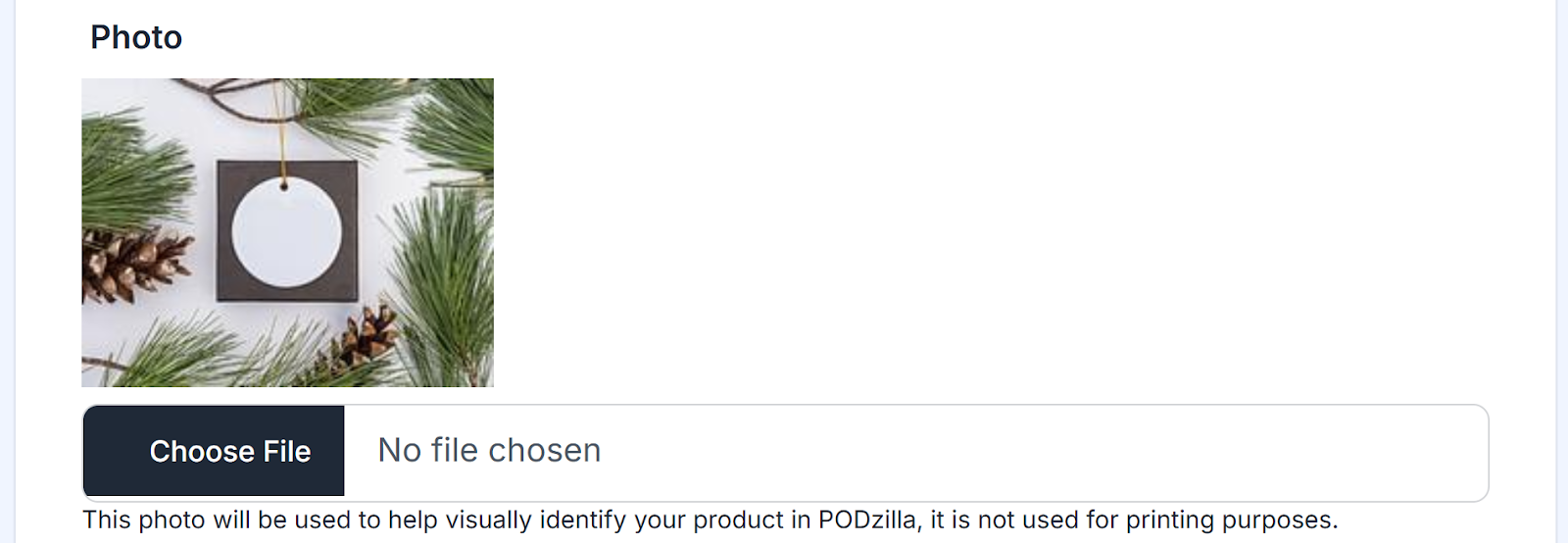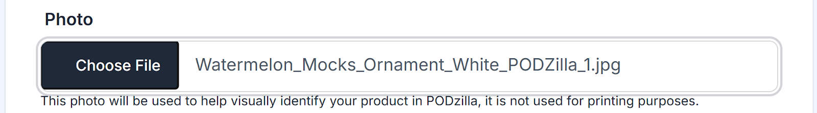 You can upload a photo of your product so you can tell what it is from a glance in your My Products screen. This can be a listing image, screen shot, or design file. It is not the file that will be used to print your product.