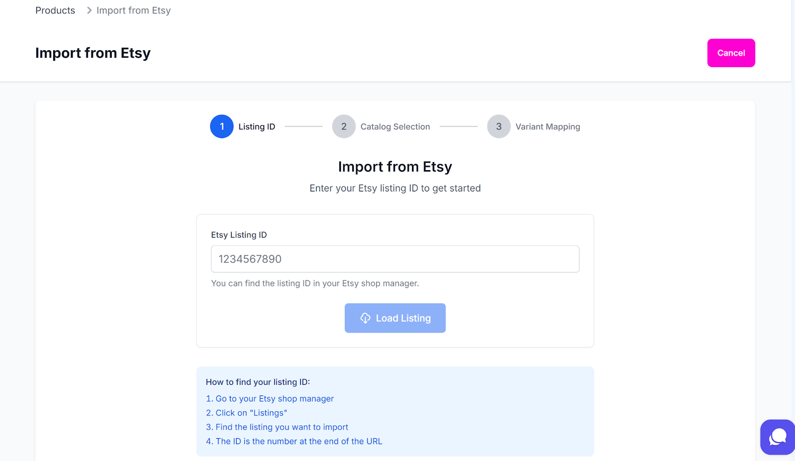 1. Open your listing in Etsy and copy the listing ID at the end of the URL: