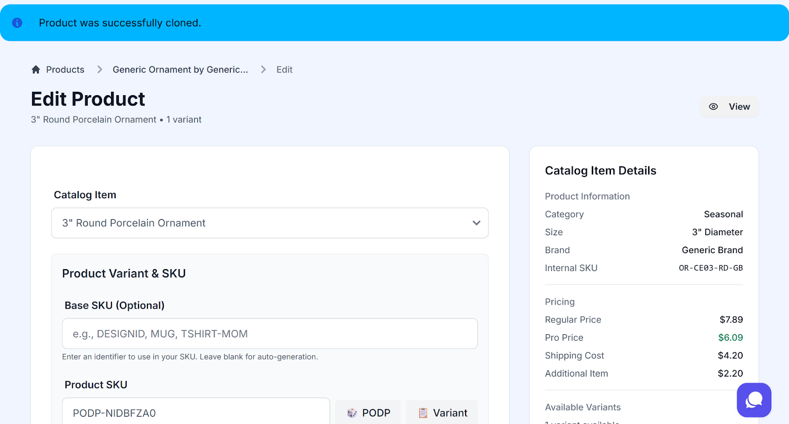The product will be copied and a banner will show at the top stating that the cloning was successful. This is the new file where you’ll add the information for your new product.