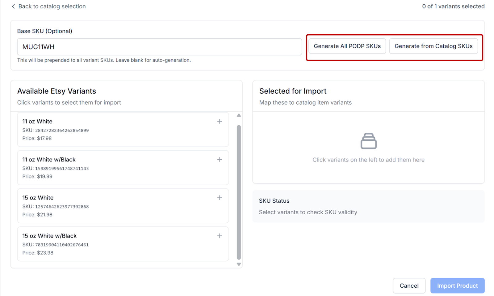 Click either the PODP All or Variant All button so it assigns new shorter SKUs to your variations. Then you can copy and paste those shorter SKUs into your Etsy listing.