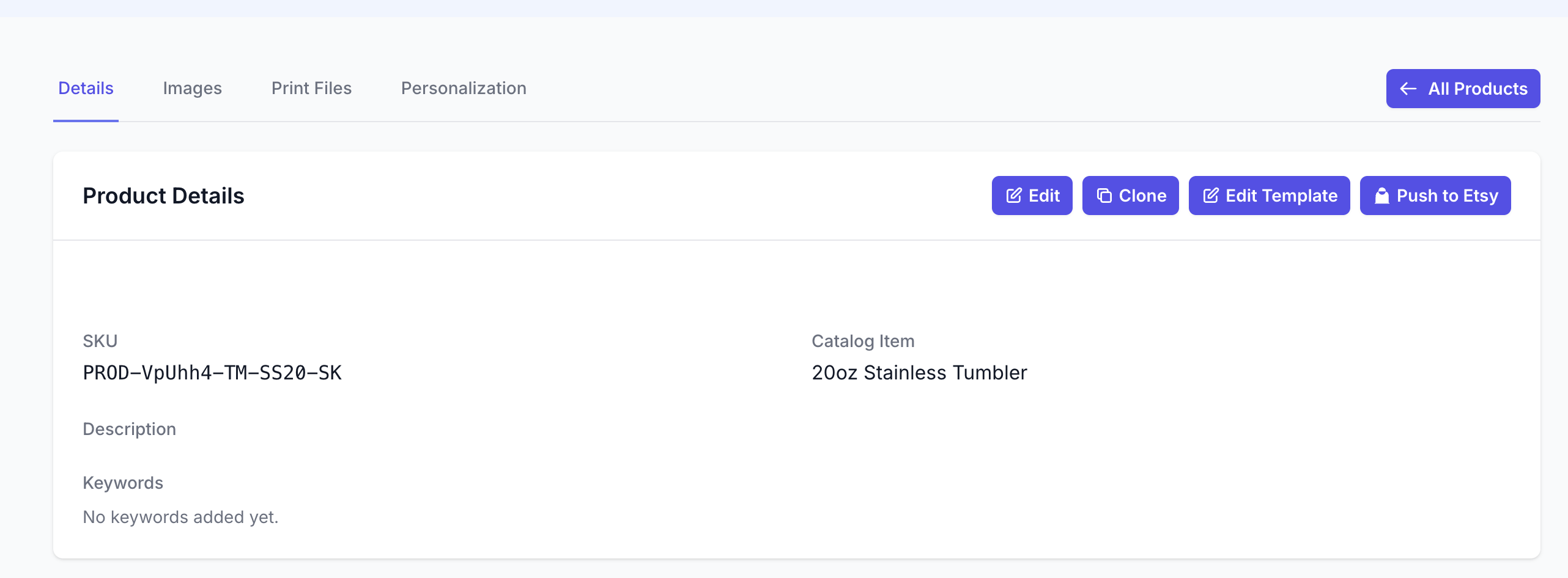 There is also a button for Push to Etsy. As of 11/2025 that feature is not yet functional.