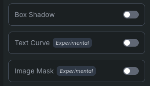 There are also options if you scroll down for Text Curve and Image Mask. Those are marked experimental but feel free to try them. The curve works slightly differently than Canva and does not make completely circular text.